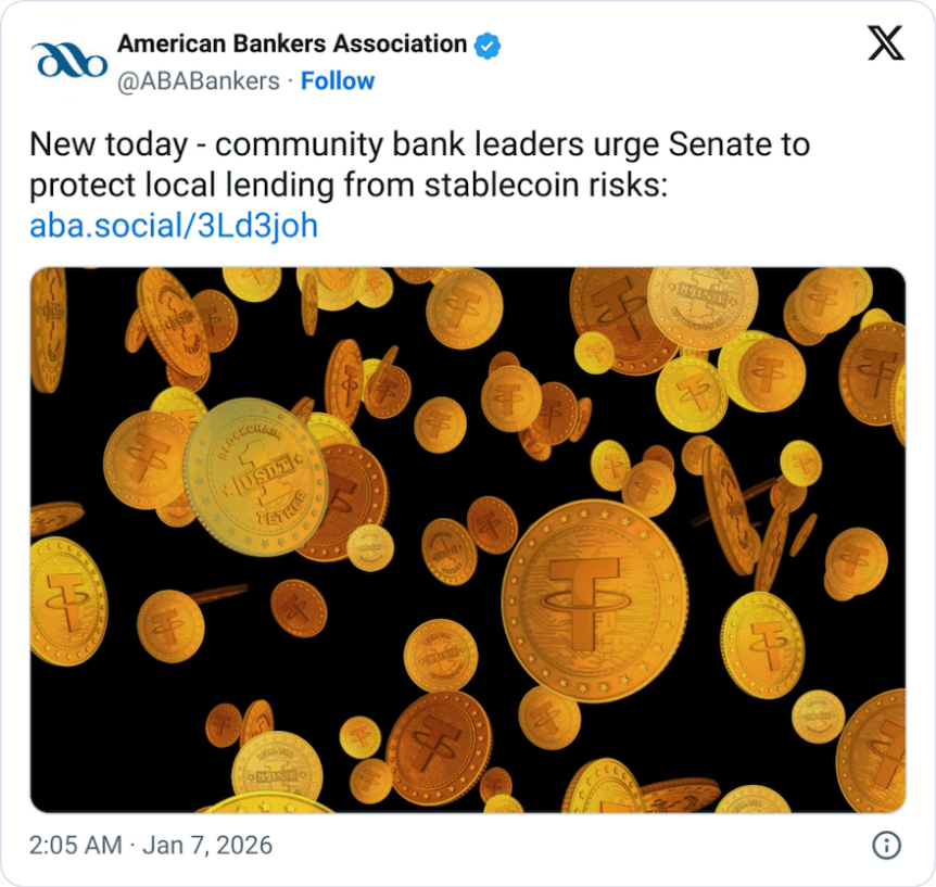 - Community banks argue that stablecoin platforms are exploiting regulatory gaps, offering yield through partnerships with digital asset exchanges.