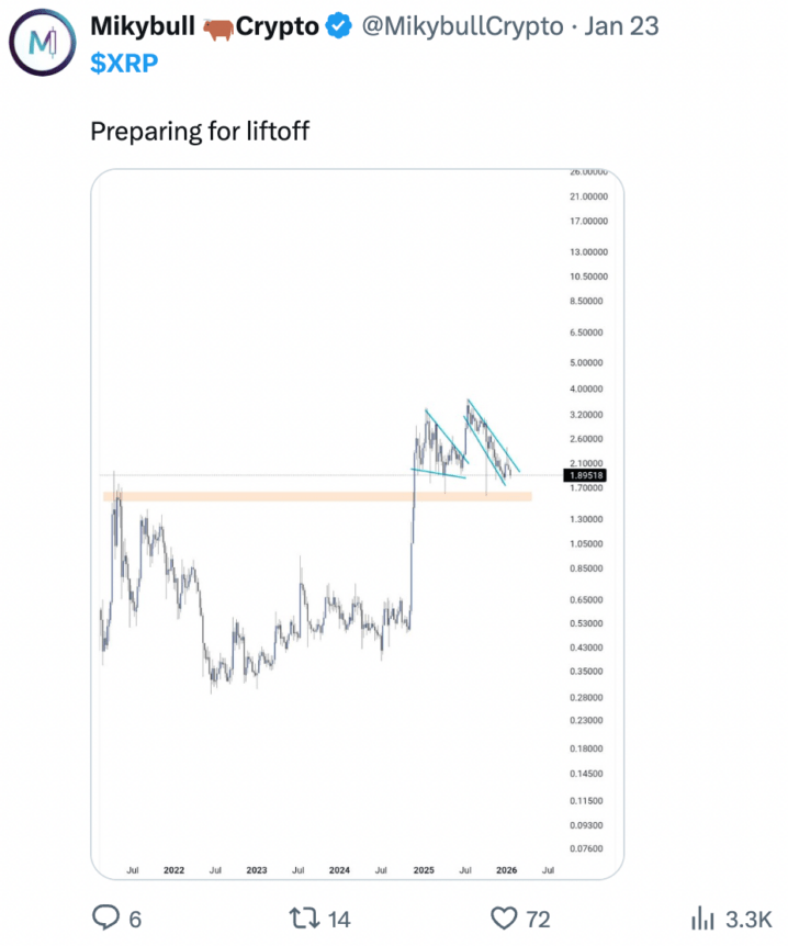 - Historical references to the pattern of accumulation followed by extended consolidation before major moves, including past cycles where XRP moved from sub-$1 to multi-dollar regimes.